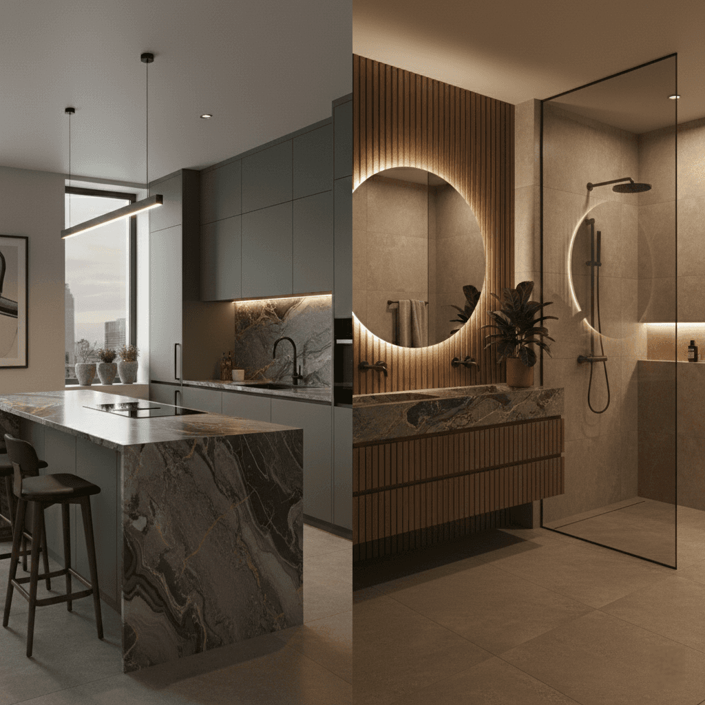 Authenticity: There is a psychological comfort in things that are "real." A solid stone countertop or a wood-slat wall feels permanent and grounded, giving the home a sense of history even in a modern skyscraper.