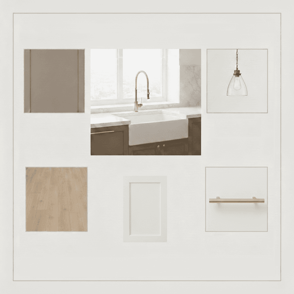 This project explores a refined 'Mushroom and Marble' palette, utilizing strategic color blocking to create visual depth. By pairing muted taupe base cabinets with airy white uppers, the space feels grounded yet expansive. The integration of a waterfall marble island and brushed gold accents serves as a luxurious focal point, bridging the gap between classic warmth and modern minimalism.
