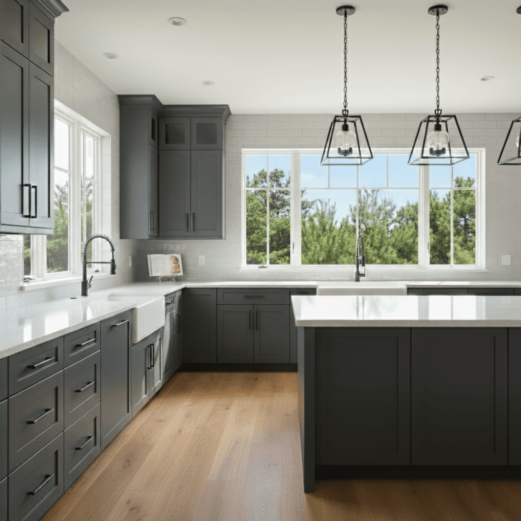 Plywood-Core Cabinetry: While many stock cabinets use particleboard, choosing a plywood-core option (such as high-end KraftMaid or Origin 21 lines at Lowe's) offers better structural stability and moisture resistance. It won't sag under heavy quartz countertops and holds screws more securely over decades of use.